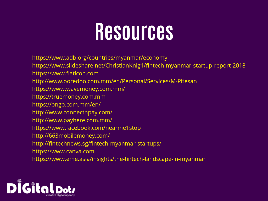 We, Digital Dots’ experts are highly specialised in the design, development of websites, digital marketing and digital applications in Myanmar. Hundreds of projects have been delivered across a multitude of platforms and industries. Our passion for building great websites, applications and delivering digital solutions hasn’t changed one bit. Our clients choose us because we deliver success for them strategically and commercially. If you are running a Fintech startup and need digital marketing, design & development,  just send us a message from here.