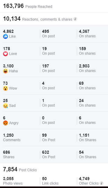 The result is Insaneeeeeeeeeeeeeee! It goes viral for one week among people. Look at these numbers. It is 100% organic. ( Honestly, paid reach is the only 5.6K ).