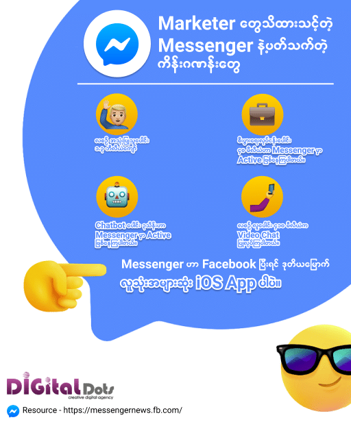 Messenger ဟာ Conversational Marketing လုပ်ဖို့၊ Lead တွေ ဖမ်းဖို့ နဲ့ Customer Service တွေပေးဖို့ အကောင်းဆုံးနေရာဖြစ်နေရတဲ့ အကြောင်းအရင်းက ဒီ ကိန်းဂဏာန်းတွေပါပဲ။ ဉာဏ်နဲ့ ယှဉ်သုံးပြီး အကြမ်းစား Marketing Strategy တွေဖန်တီးနိုင်ကြပါစေ။